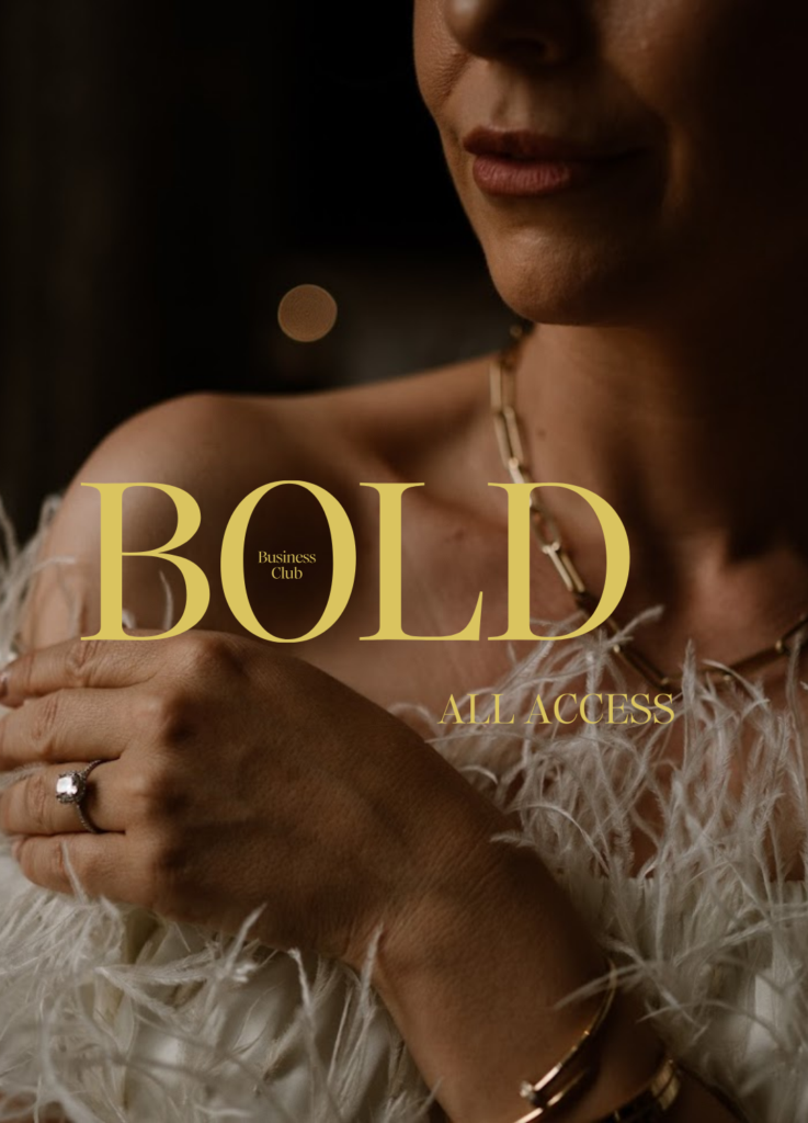 Bold Business Club: All Access geeft je 12 maanden toegang tot alles wat jij nodig hebt om door te groeien. Inclusief directe begeleiding van mij, toegang tot AL mijn cursussen en programma’s, én een netwerk vol vrouwen die nét zo hard gaan als jij.