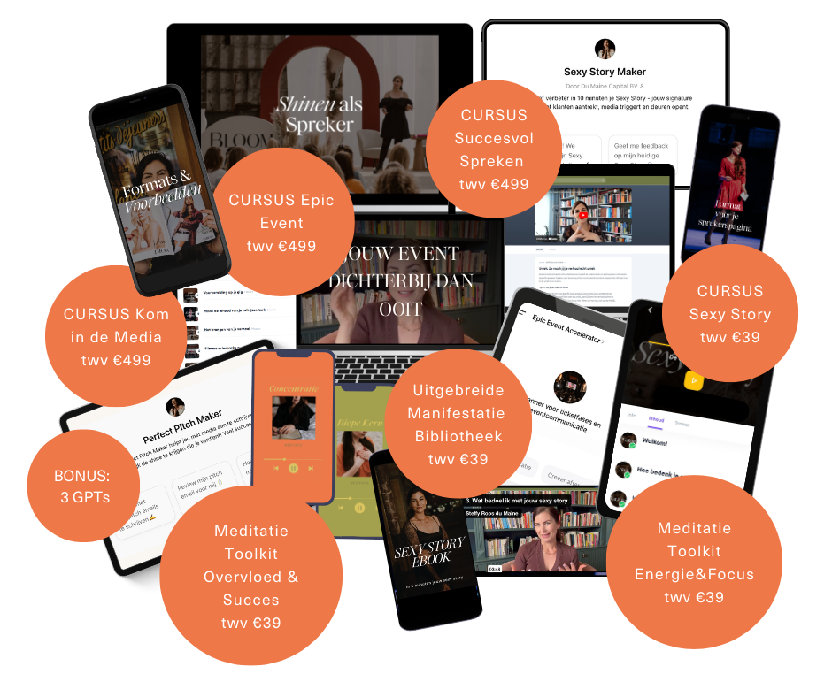 Je krijgt directe toegang tot mij (dagelijks via de app en maandelijks via hot seat coaching), 2 live dagen op locatie, mijn volledige cursus-archief én exclusieve nieuwe programma’s, plus een intiem netwerk van gelijkgestemden.