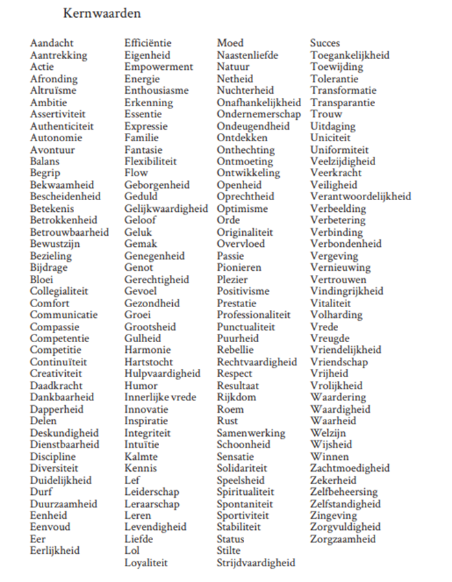 Gebruik deze tabel om je eigen kernwaarden te vinden