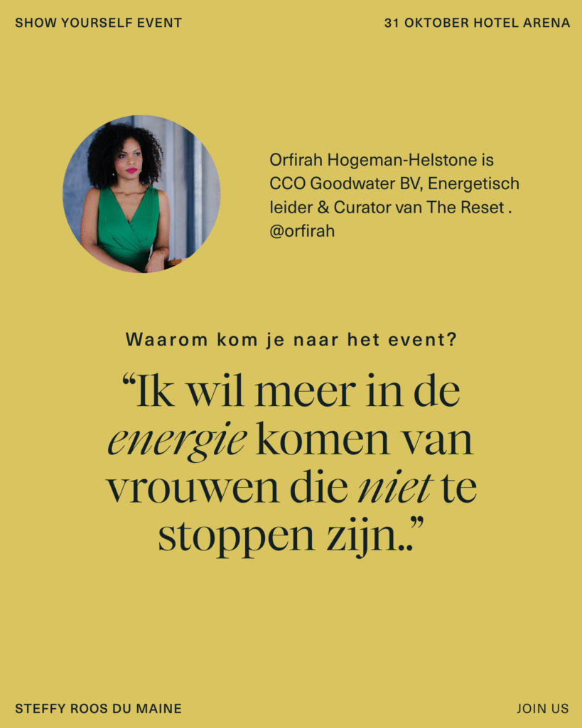 Steffy Roos du Maine is ondernemer, auteur en spreker. En vooral: een vrouw die weet hoe het is om groots te dromen en daar met volle energie voor te gaan.