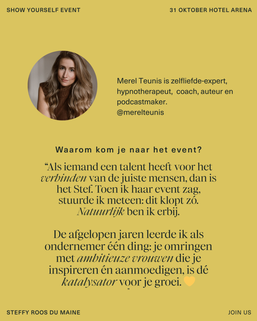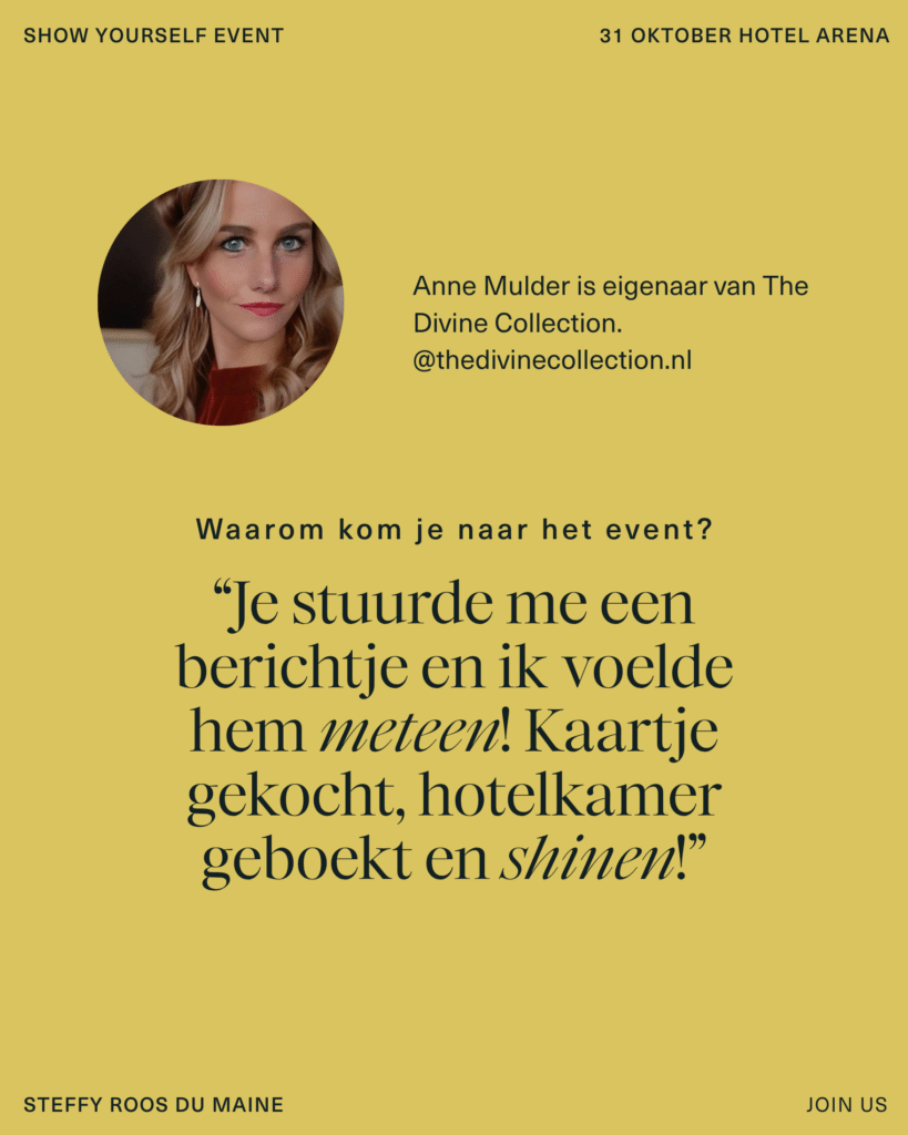 En natuurlijk neem ik, Steffy Roos du Maine, je mee in hoe je jezelf visible maakt op een manier die helemaal bij jou past.